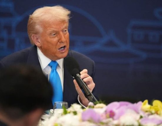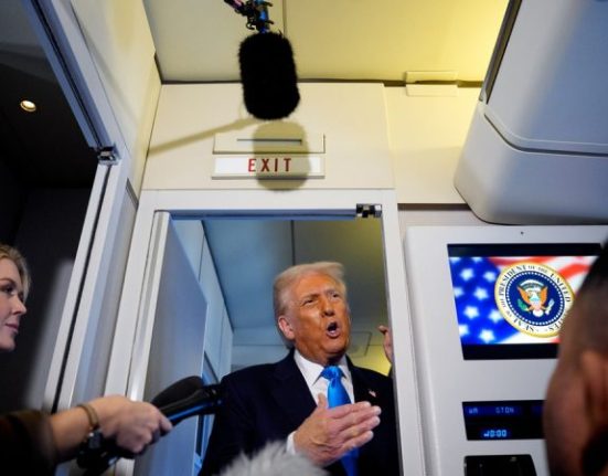 President Donald Trump spoke to the press while en route to South Korea on Tuesday aboard Air Force One and made remarks about